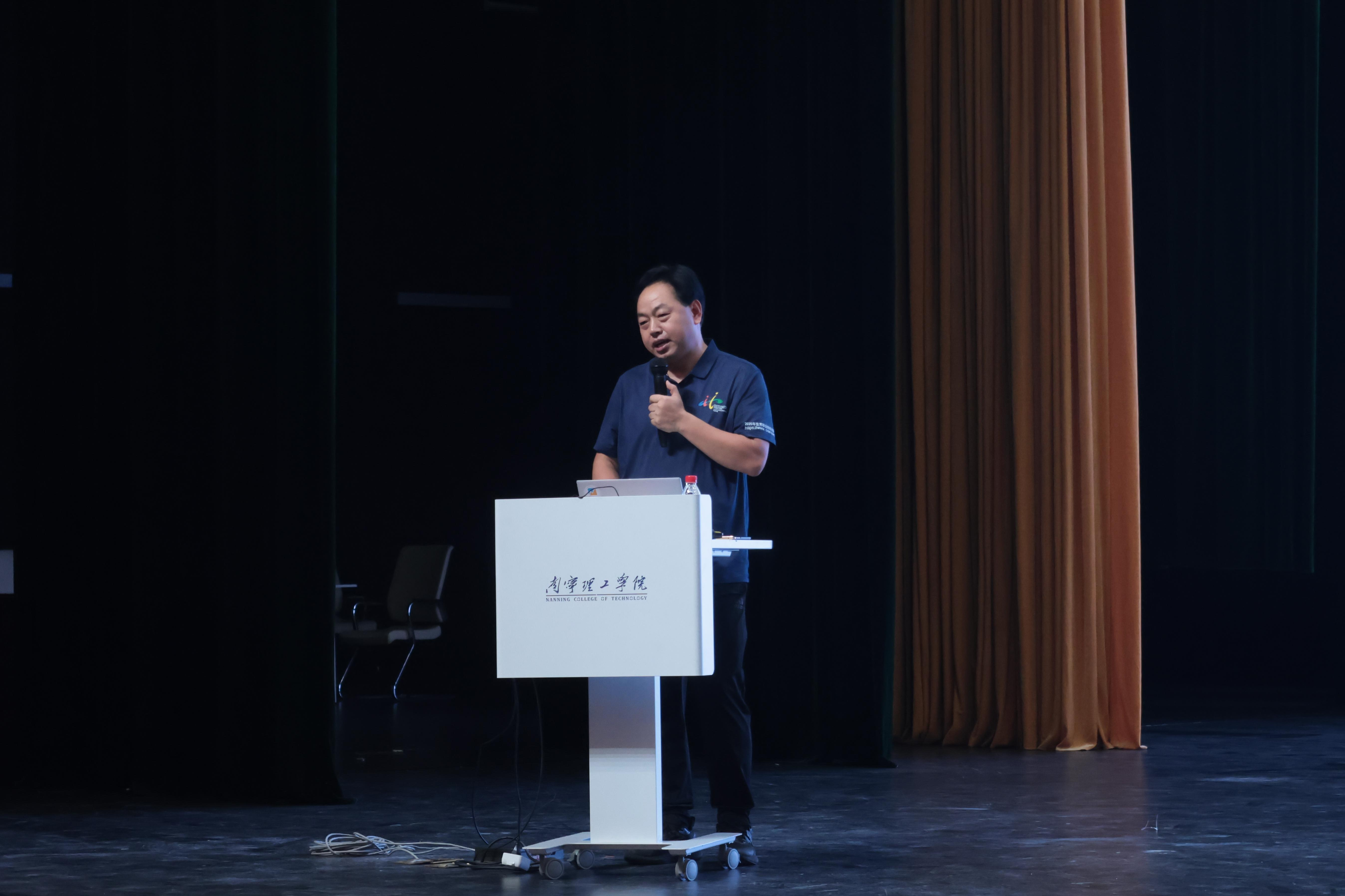 为迎接2025级体育专业新生的到来,助力其积极融入校园生活,明晰专业发展趋势,把握未来职业方向,激发专业学习兴趣,引导学生树立正确的专业观和职业规划。体育专业教研室于9月10日在东盟大剧院举行2025级体育专业新生开学第一课,本次讲座邀请南宁师范大学体育与健康学院刘怀金教授担任主讲,体育专业教研室主任李梅担任专业介绍主讲,全体体育教师参加了本次讲座。此次开学第一课的举办得到了新活力体育产业学院全程支持。