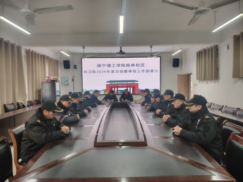 为全面梳理总结2025年工作完成情况,部署2026年工作任务,15午,后勤保卫处召开两校区2025年工作总结暨2026年工作部署会,后勤保卫处处长钟木生、副处长温怡、副处长王胜,全体行政干部、班组长及外包单位驻场经理参加会议。会议由后勤保卫处处长钟木生主持。