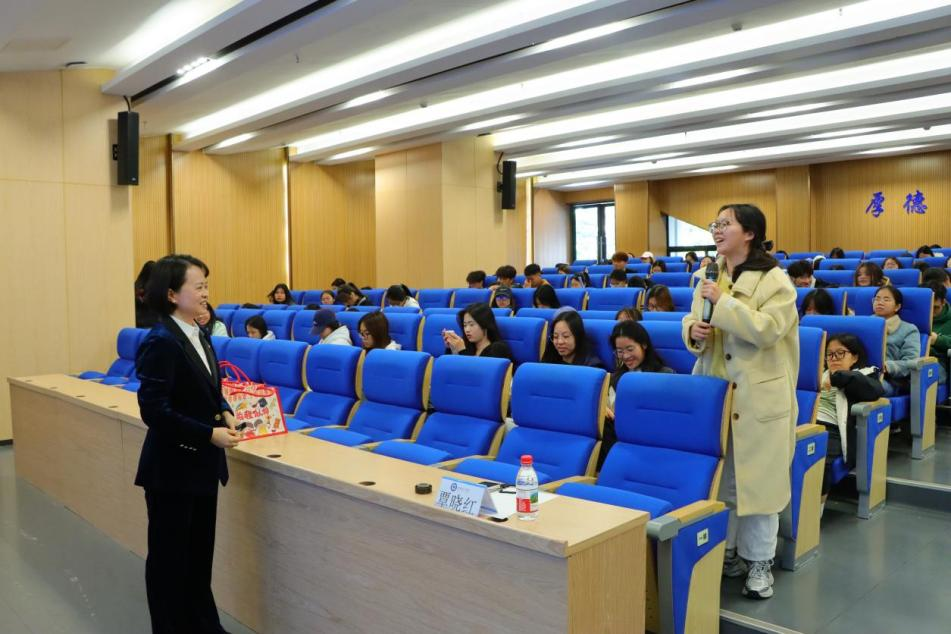 吴冰冰女士扎根银行业28年,从基层岗位逐步成长为总行全球调研专家与分行内训师。分享中,她以亲身经历为主线,系统梳理银行业发展脉络,清晰阐释银行人的成长阶梯,并聚焦“如何把握行业机遇”“如何提升求职竞争力”等学生关切的问题,从应聘条件、面试技巧到职业素养细致剖析。她强调,诚信品格、沟通能力与持续学习意识是金融人不可或缺的素质,并以“脚下有实践厚度、脑中有理论深度、心中有赋能温度”的讲述,为学生揭开银行职场的神秘面纱。