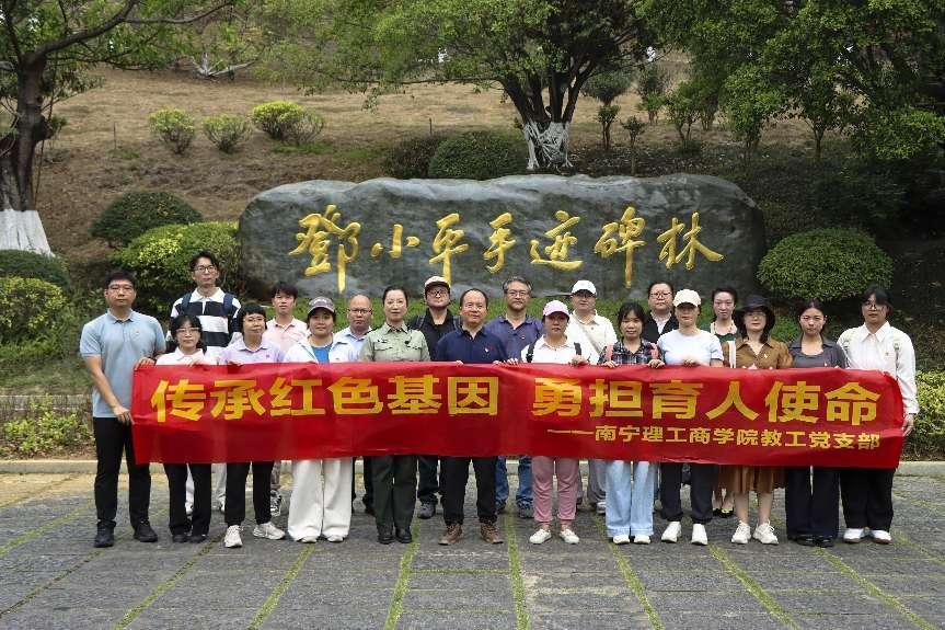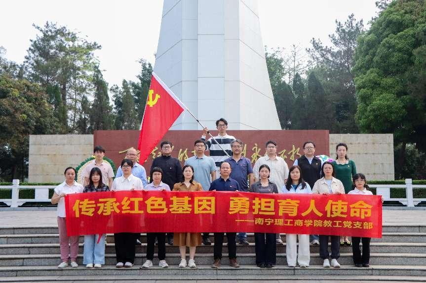 为深入学习贯彻习近平新时代中国特色社会主义思想,扎实开展红色教育,传承红色基因,赓续红色血脉。2026年4月7日,南宁理工商学院教工党支部组织全体党员,赴全国爱国主义教育示范基地——百色起义纪念公园,开展“传承红色基因,勇担育人使命”主题党日活动。