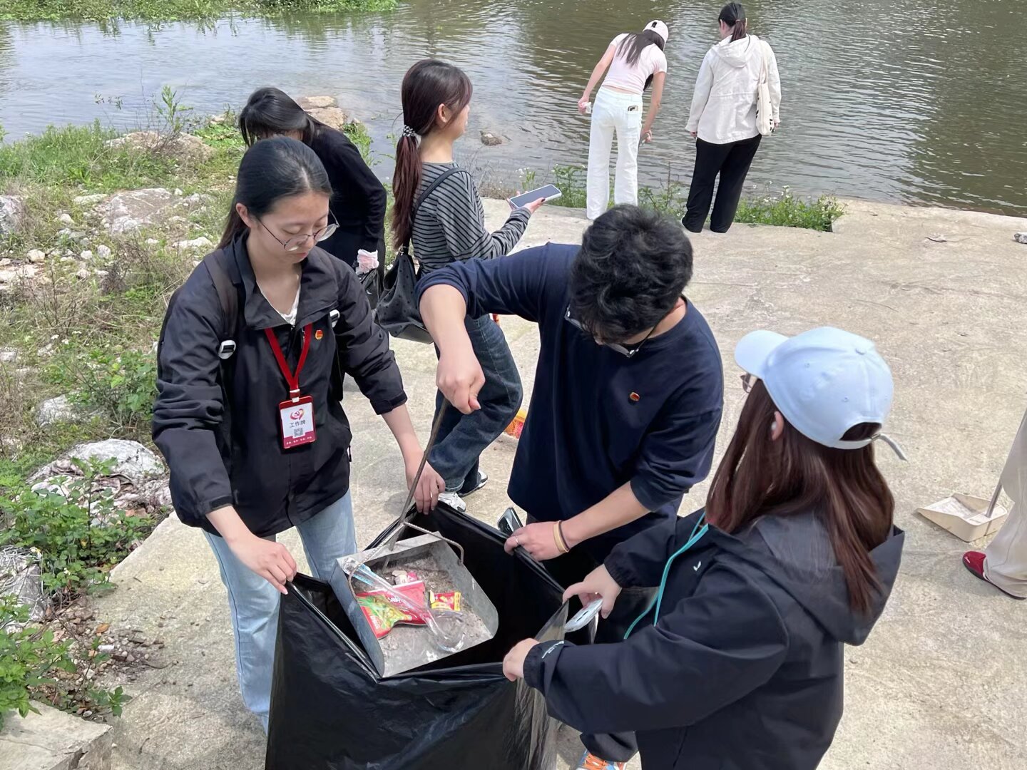 另外2个小组则深入雁山五塘村,与当地村干部、村民群众携手并肩,重点对村庄主街道、河岸边的积存垃圾、杂草杂物进行全面清理,有效避免车辆打滑及人员摔倒。同学们不怕脏、不怕累,与村民默契配合、干劲十足,以真抓实干的务实作风,让乡村道路与河岸面貌焕然一新,赢得了村民们的一致称赞。